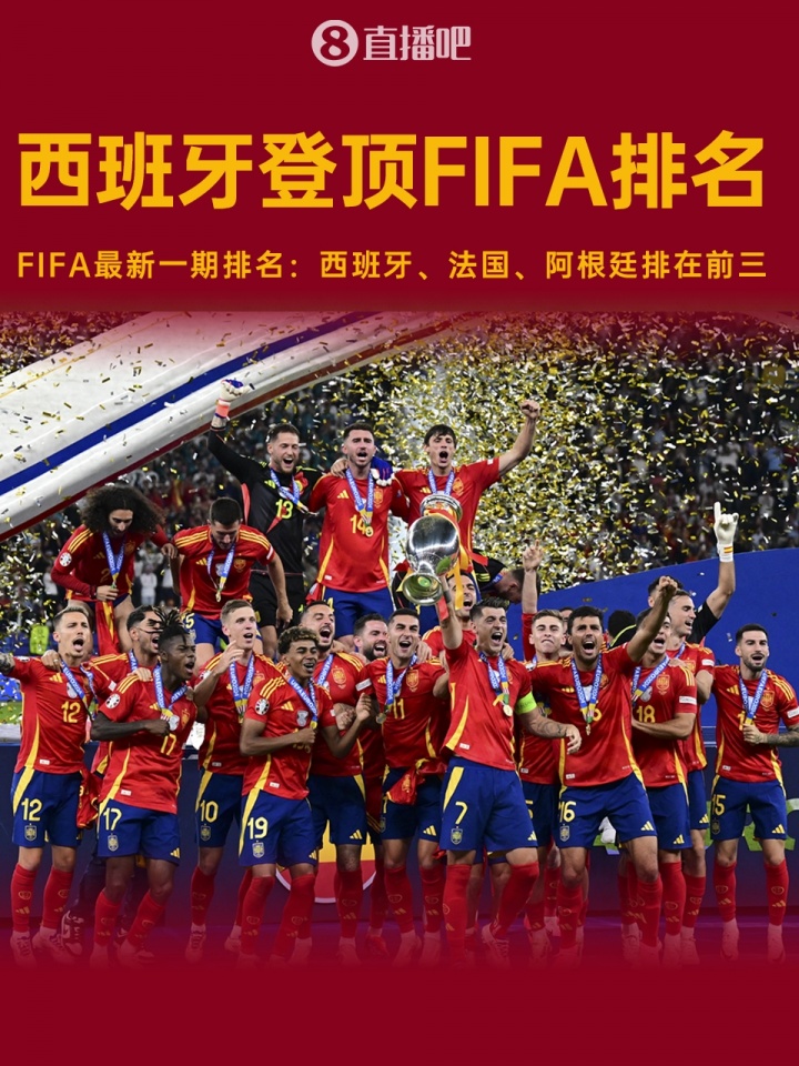 FIFA最新一期排名:西班牙升至第一!法国第二,阿根廷跌至第三
